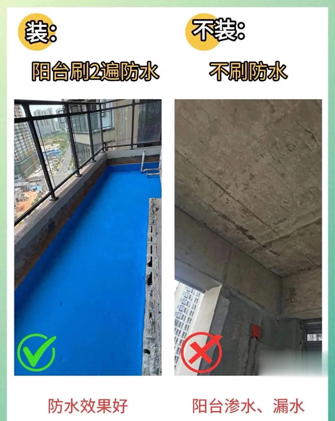 1️⃣ 阳台防水:刷两遍 vs 不刷