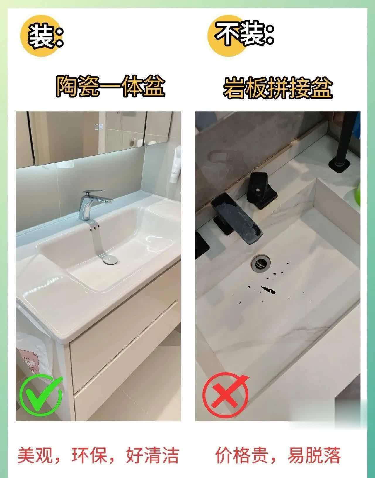 5️⃣ 洗手盆:陶瓷一体盆 vs 岩板拼接盆