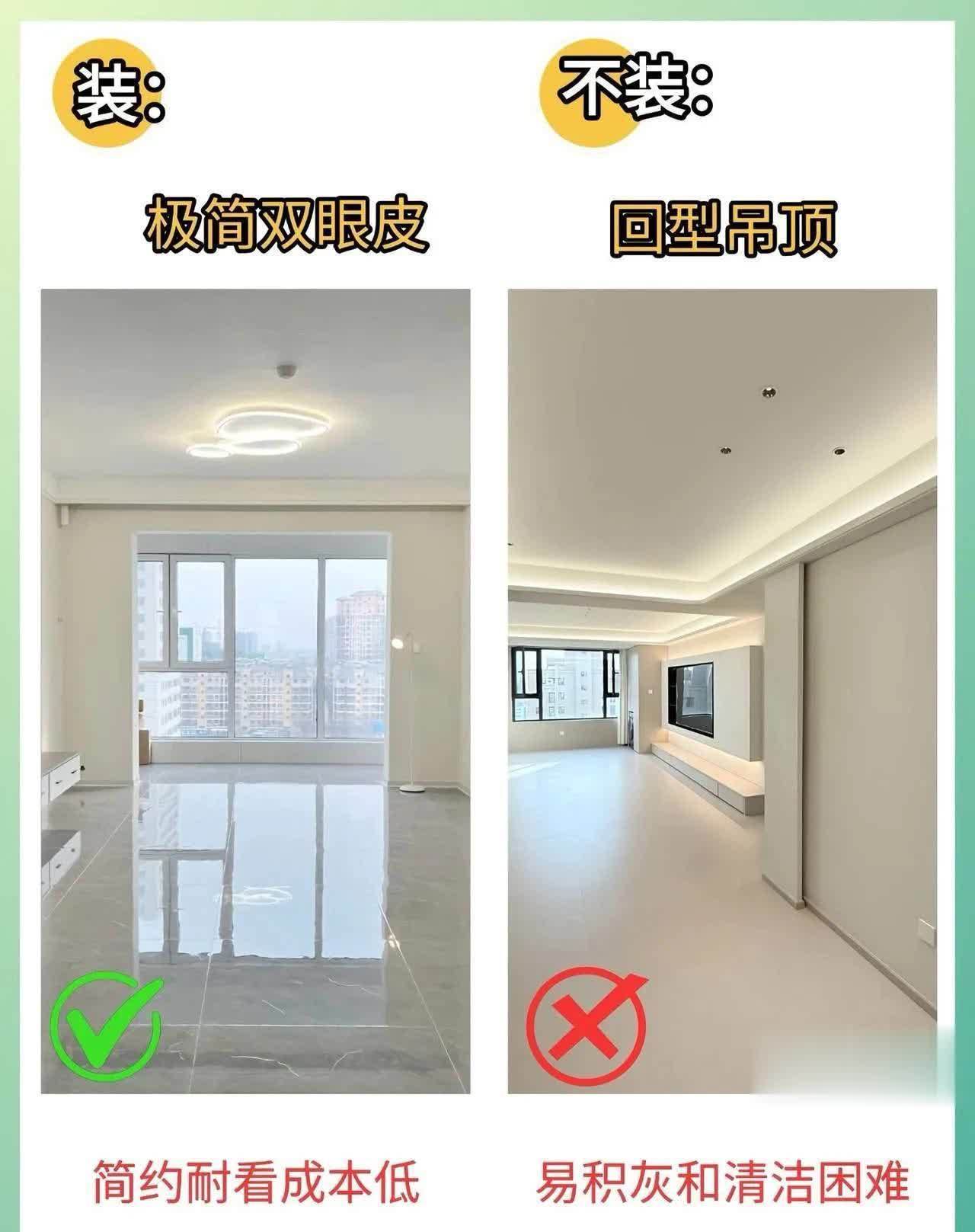7️⃣ 吊顶:极简双眼皮 vs 回型吊顶